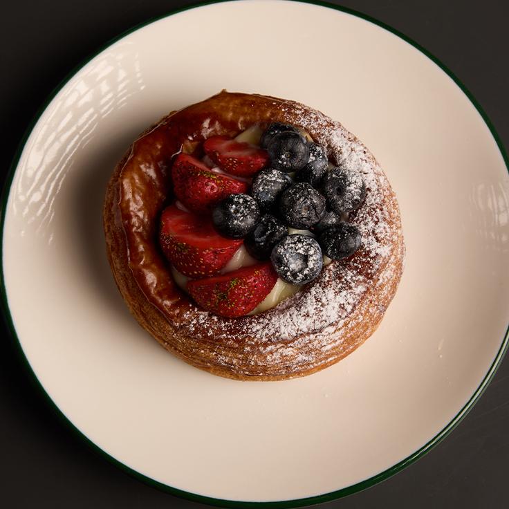 Badem Frangipane, Krem Patisserie ve Taze Mevsim Meyveleri.