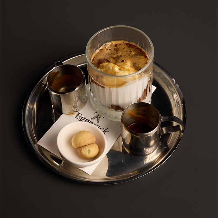 Yoğun kremalı süt + Double shot espresso.